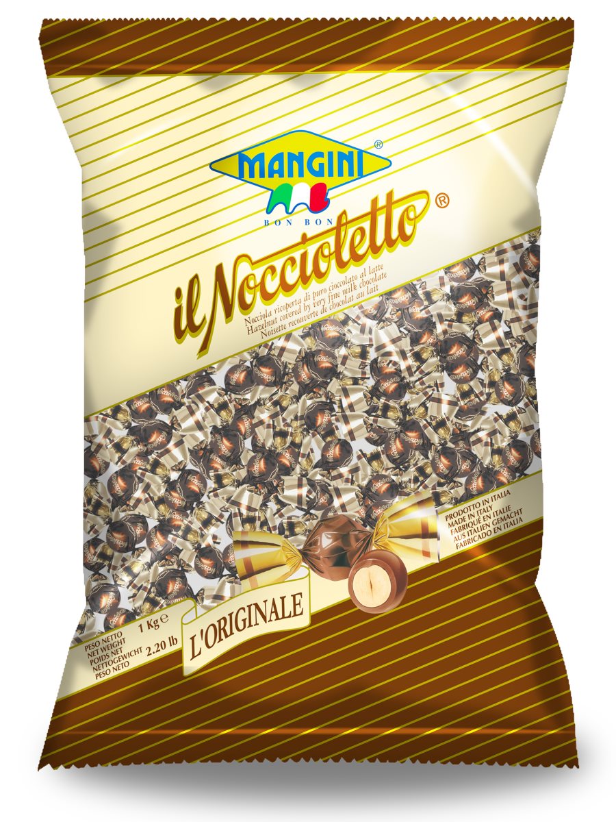 Ristet hel hasselnød overtrukket med mælkechokolade.