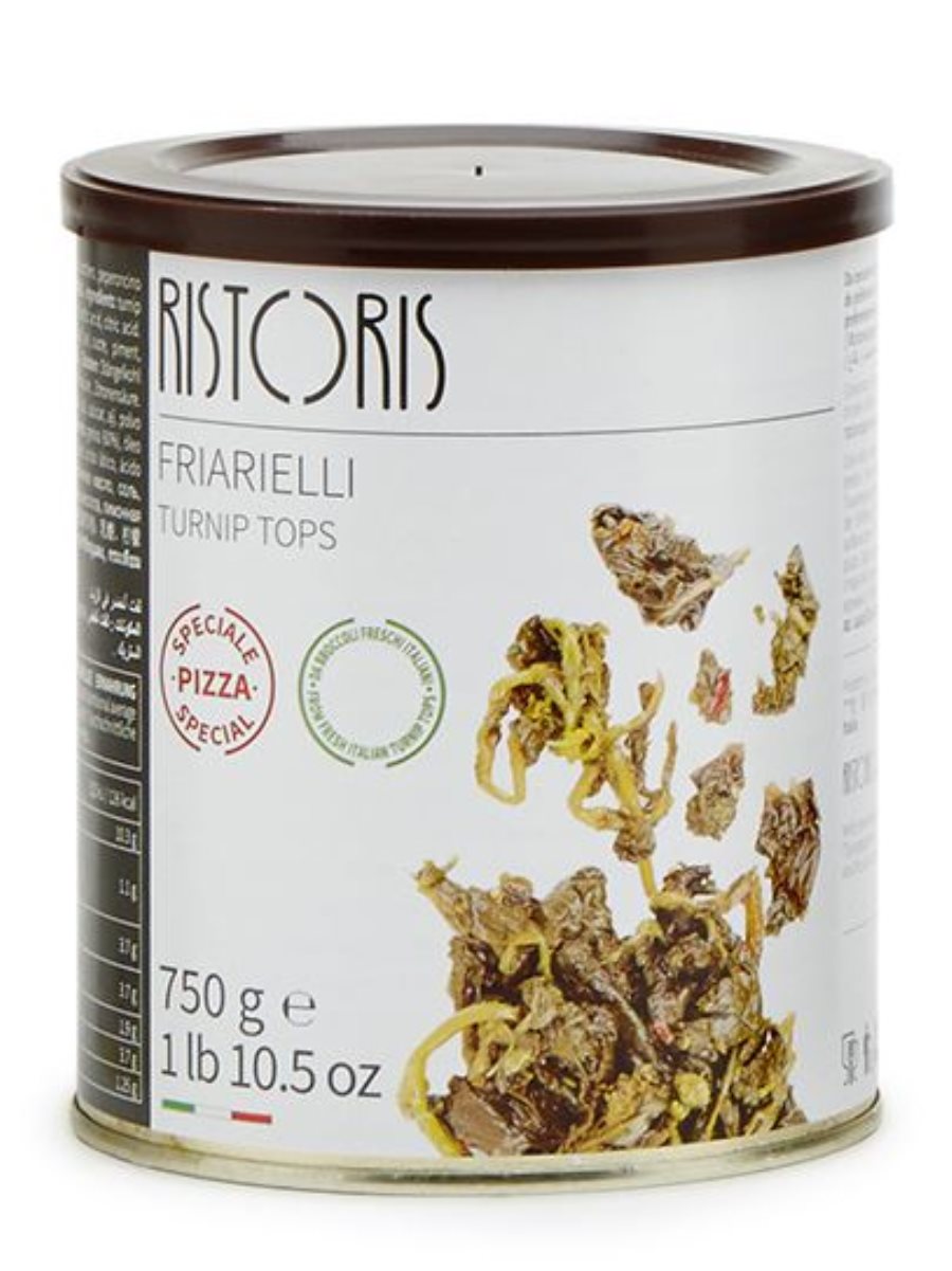 Broccoli Friarielli frisk forarbejdet og kogt i napolitansk stil, sauteret i en gryde med solsikkeolie, hvidløg og chili, præcis som traditionen foreskriver. Specielt produkt til pizza, det fugter ikke dejen, bevarer farve og konsistens under tilberedning og binder sig med stor smag til de andre ingredienser, især med smuldret pølse. Også perfekt til påfyldning af focaccia, panini og til pynt af crostini.