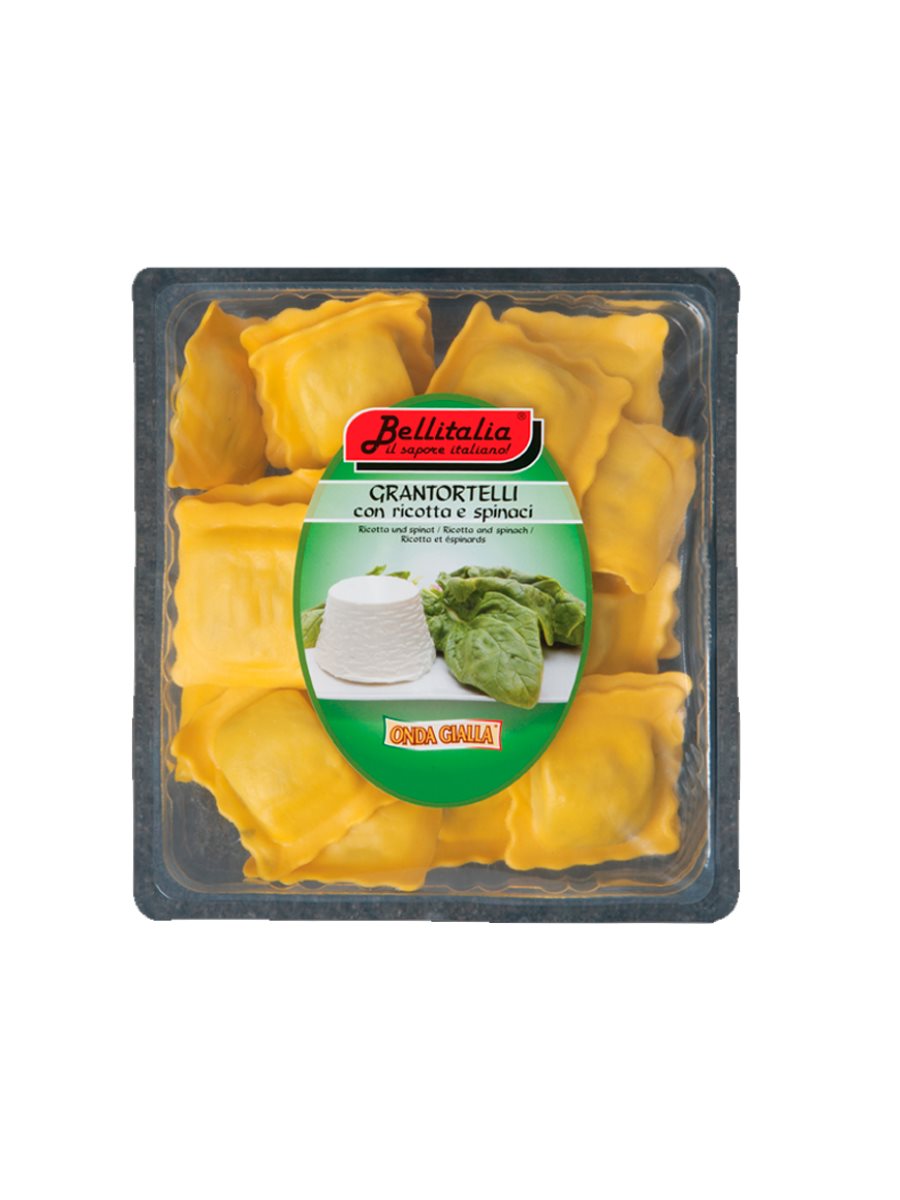 Gantortelli med ricotta og spinat fyld. Vægt pr. stk er ca 24g.