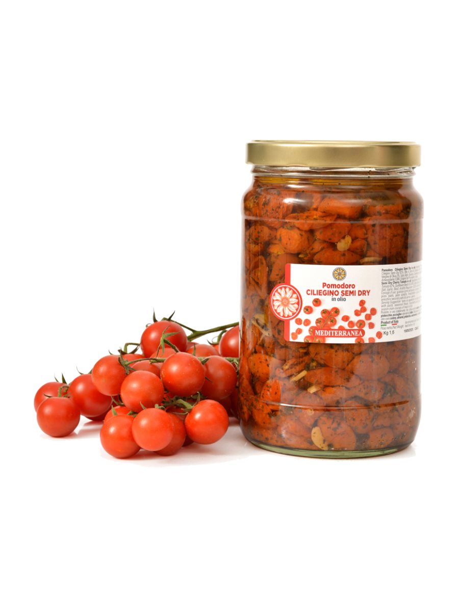 Semidried cherrytomater (pomodorino ciliegino) fra en siciliansk producent.